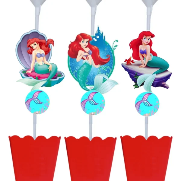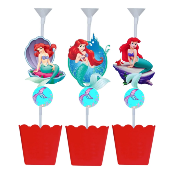 Kit 5 Centro De Mesa A Pequena Sereia Com Vareta Para Balão