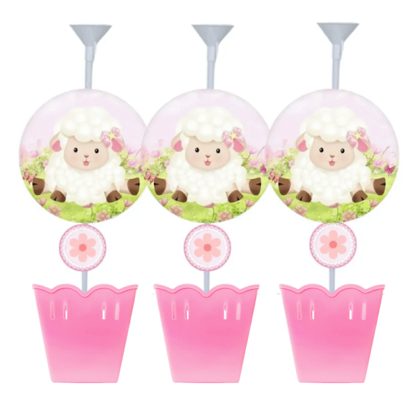 Kit 5 Centro De Mesa Festa Infantil Ovelhinha Rosa