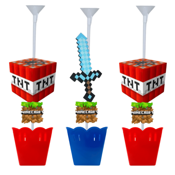 Kit 5 Centro De Mesa Festa Tema Minecraft Espada Diamante