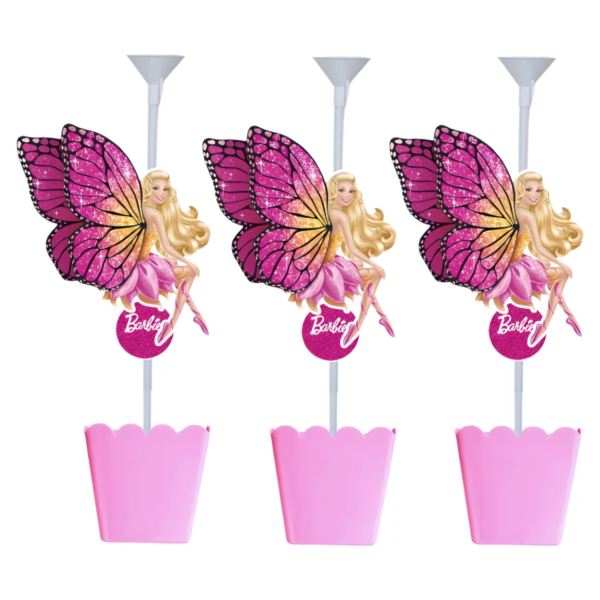 Kit 5 Centro De Mesa Festa Tema Barbie Butterfly Borboleta