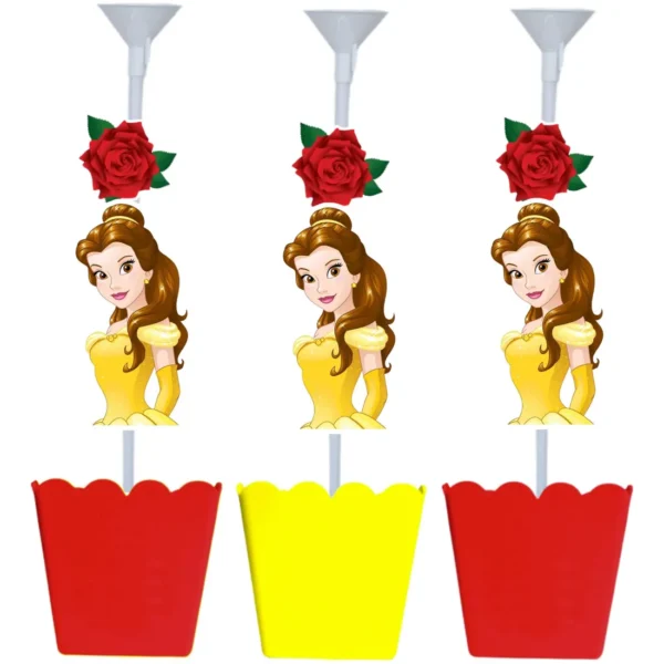 Kit 5 Centro De Mesa Princesas Bela Fera