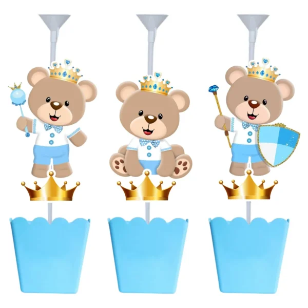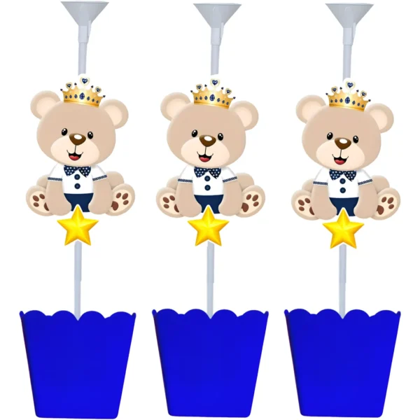 Kit 5 Centro De Mesa Chá Bebe Ursinho Príncipe Azul Claro